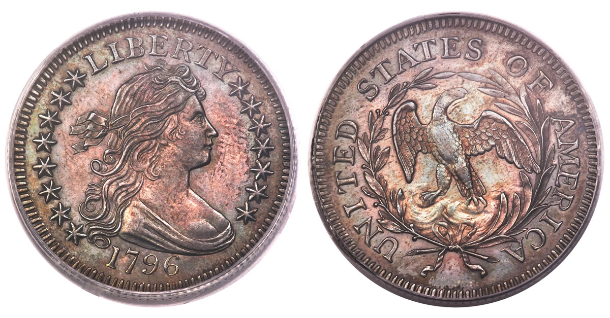 Of the early gold on offer, a 1796 Capped Bust Right Quarter Eagle, XF45, stole the show at $144,000. The Extremely Rare No Stars BD-1, CAC Approved, specimen is referred to as the "Holy Grail Variety" because it is the rarest quarter eagle variety from 1796 to 1807, and probably the rarest from 1796 to 1834.