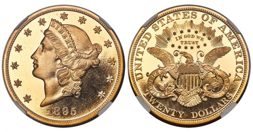 The Single-Finest Certified Example of an 1895 Liberty Twenty, PR67 Ultra Cameo, NGC, ended at $234,000. Experts estimate the coin is one of roughly 16 to 24 pieces that remain from just 51 proof Liberty double eagles that year. Rarely seen at auction, two specimens are included in the National Numismatic Collection at the Smithsonian Institution and another is preserved in the collection of the American Numismatic Society. The auctioned coin was a magnificent Superb Gem proof, the single-finest certified example at either of the leading grading services, exhibiting razor-sharp definition throughout, with intricate detail on Liberty’s hair and the star radials.