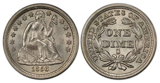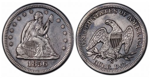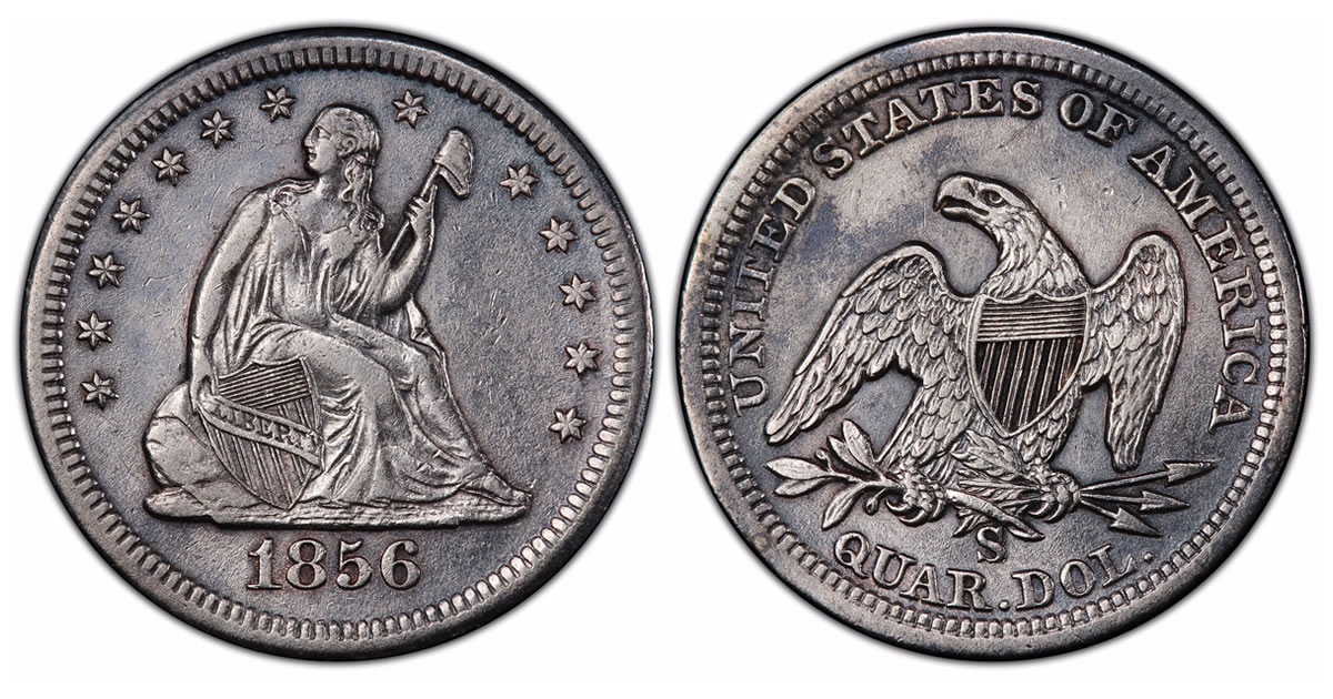 The 1856-S/s silver quarter now is graded PCGS XF45.