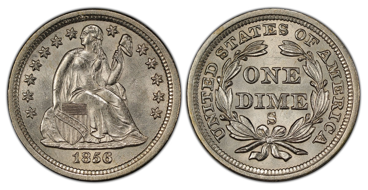 "Another major highlight is an 1856-S Liberty Seated silver dime graded PCGS MS65 CAC and tied for the finest known," said Manley. "Only 70,000 dimes — just $7,000 face value — were minted in San Francisco in 1856 and a just handful are known today in uncirculated condition. This one’s a miracle survival coin, still pristine with full luster. It was displayed at the American Numismatic Association 2019 Chicago World’s Fair of Money."