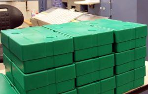 For consumer reference, the outside of the San Francisco-produced Silver Bullion Coin green "monster" boxes will be labeled and numbered to allow purchasers of sealed boxes to confirm that the coins were produced at the San Francisco Mint. Each monster box contains 500 one-ounce coins. The production lot number on the green monster boxes of coins produced at San Francisco will incorporate the numbers 800,000 through 801,999.