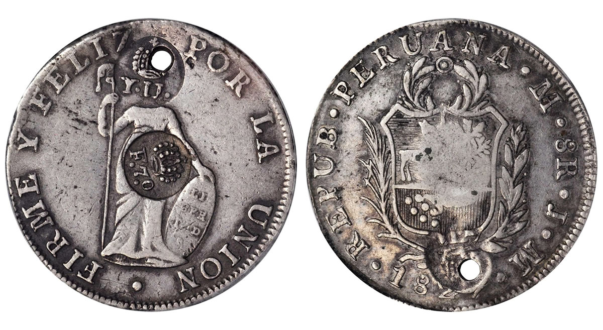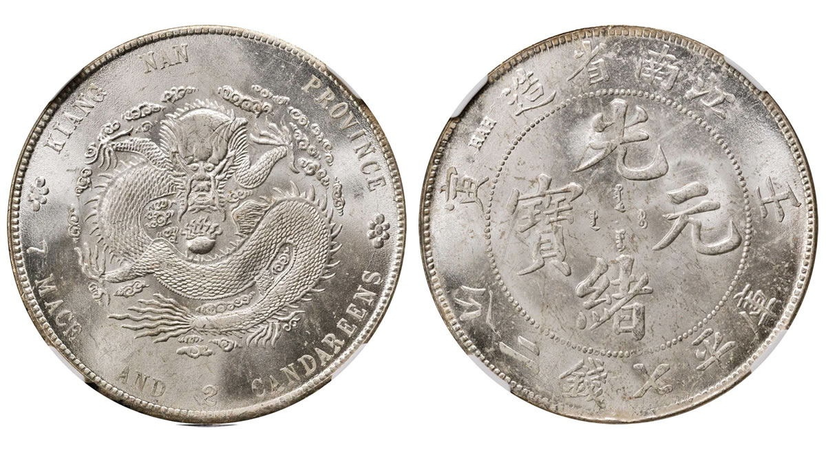 The leading price was garnered by an interesting and rare doubly countermarked 8 Reales from the Philippines, that featured the authorities of both Ferdinand VII and Isabella II and brought $43,200. An argent and lustrous Chinese Dollar from Kiangnan sold for $32,400.