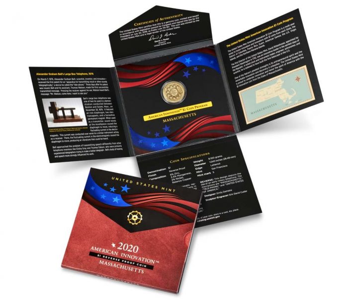 The 2020-S Reverse Proof Massachusetts $1 Coin is available from the U.S. Mint’s online catalog dedicated to American Innovation products.
