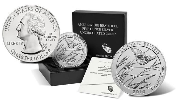 Today at noon ET, the United States Mint will introduce its second product of the month, the 2020-P Tallgrass Prairie National Preserve Five Ounce Silver Uncirculated Coin.