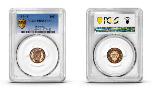 Previously housed in another grading company’s holder, the historic dime that once belonged to legendary collector Louis E. Eliasberg Sr., is now encapsulated in a state-of-the-art, high-security PCGS holder and graded PCGS PR65+.