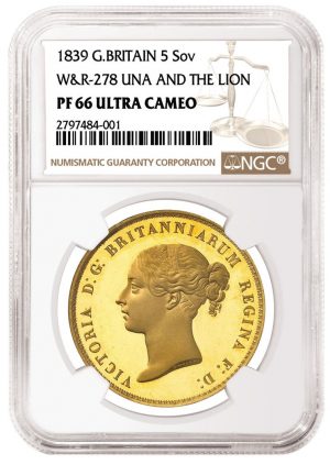 Incredibly, on the very same day, two British coins certified by NGC also set a record price at auction. An 1839 "Una and the Lion" Five Pounds and an 1831 Gold Crown each achieved a record price of more than $1.1 million.