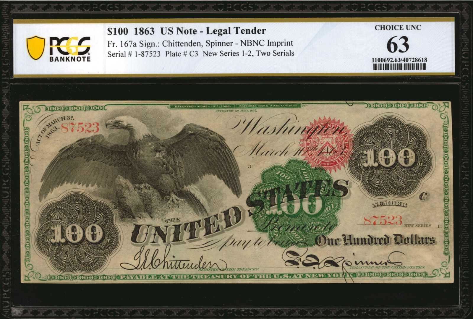 The selection of U.S. Currency is highlighted by the magnificent Karelian Collection, including a PCGS Banknote CU 63 Fr.167a $100 Legal Tender Note, a PMG EF 40 EPQ. Fr. 376. 1891 $50 Treasury Note, and a PCGS Banknote Ch EF 45 Fr. 377. 1890 $100 Treasury Note.