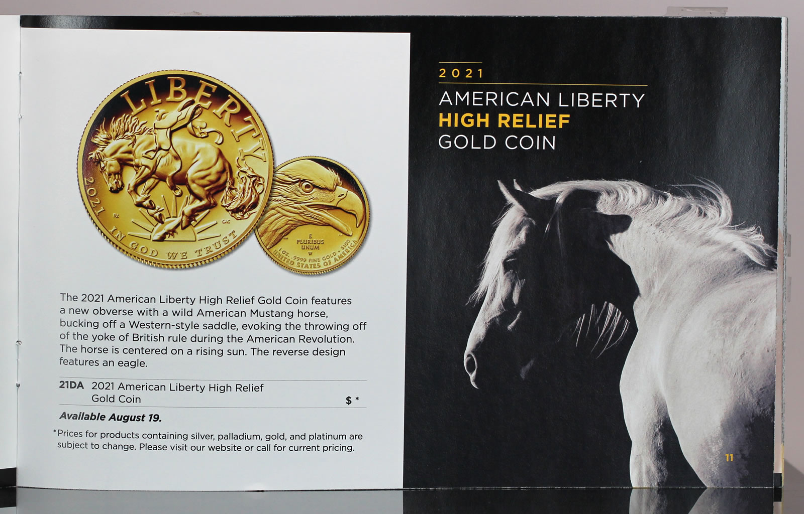 A bucking horse is depicted on the obverse (heads side) of the high relief 2021-W $100 American Liberty Gold Coin, marking a notable change from past editions which feature renditions of "Lady Liberty." The West Point-minted 1-ounce .9999 fine gold coin is scheduled to launch Aug. 19.