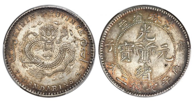 A 1900 Chinese Kirin Kuang-Hsü "Flower Basket" dollar, MS62 PCGS, presents collectors with a rare and eye-appealing large characters variety, a find of a highly challenging type to find in this condition. The 1900 Kirin "Flower Basket" dollar does not often come to auction, and when it does, it is almost always in circulated condition. The specimen on offer is a fully Mint State example of the less than 100 examples certified by either PCGS and NGC, of which only a dozen are in Mint State condition.