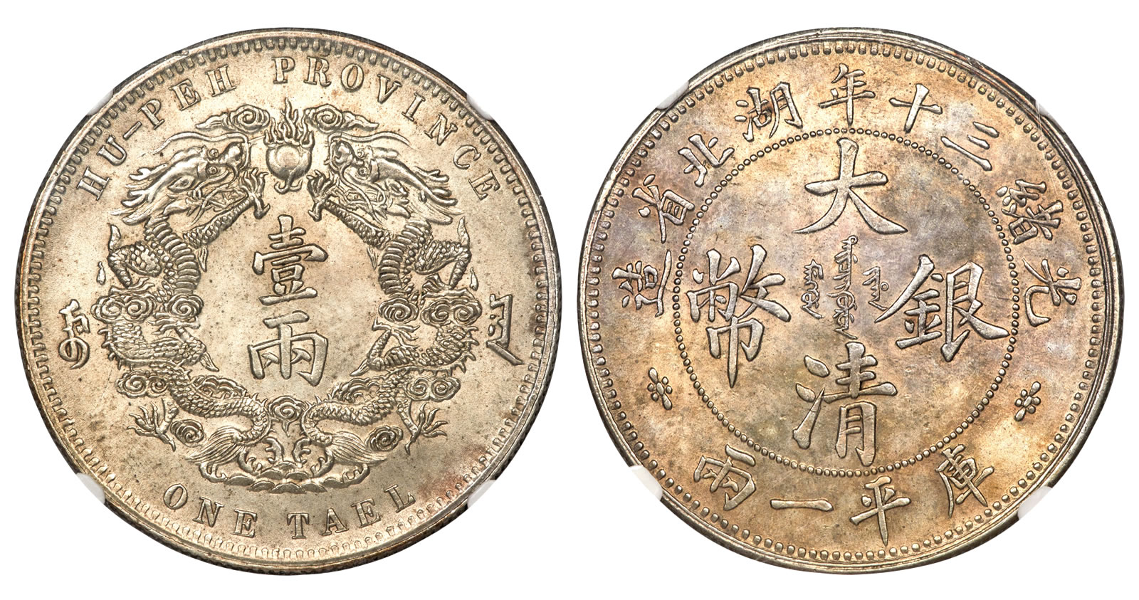 A classic Chinese provincial rarity, and one which enters into a state of supreme scarcity as one moves up the Mint State grading scale, a 1904 Kuang-hsü "Large Characters" Tael Year 30, MS62 NGC, is the rarer of the two varieties known for this one-year type. The denomination is historically notable because it was originally introduced as part of a projected coinage reform based on the traditional system of Chinese weights, rather than the relatively recently introduced decimalized Dollar system.