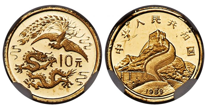 Rounding out the Dragon & Phoenix pattern issues on offer in this auction is a 1989 People’s Republic gold Proof Pattern "Dragon & Phoenix" 10 Yuan, Proof Details (Removed From Jewelry) NGC, represents a highly elusive Pattern type that is only very rarely made available on the market. As a testament to the scarcity of this pre-production issue, Heritage numismatists could locate only a single example previously sold at auction.