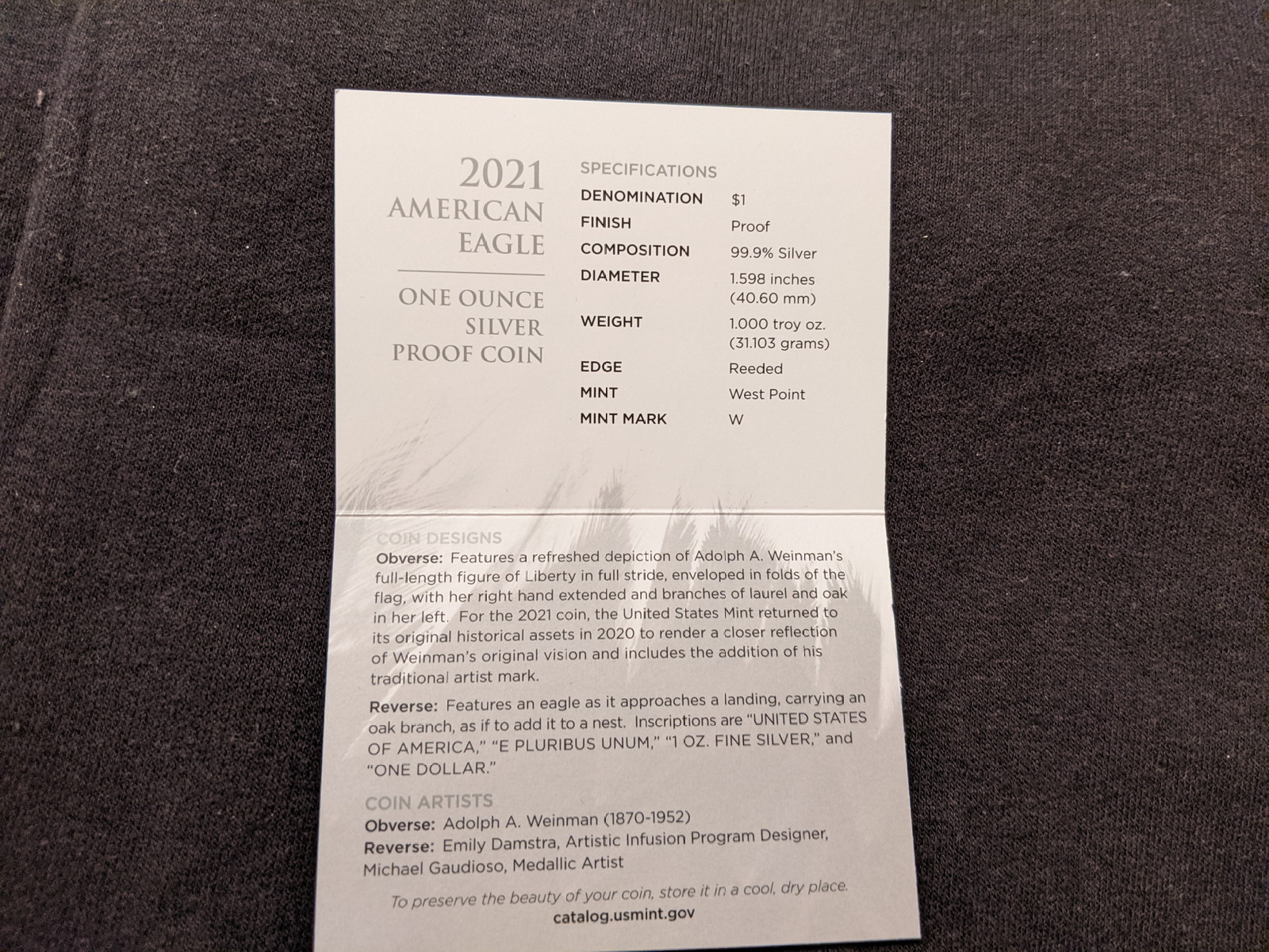 - 2021-W Proof Silver Eagle, Type 2 (+298,852)
