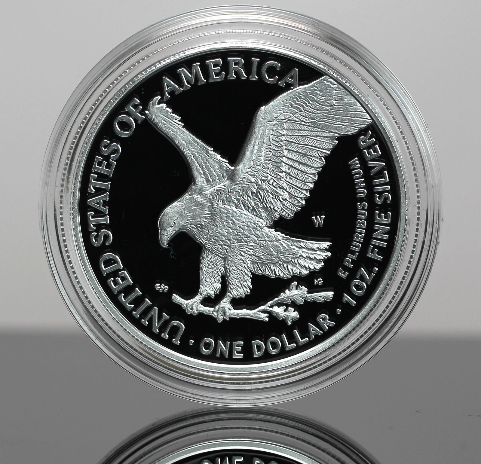 The updated and new imagery debuted a bit earlier this year on the investor-grade bullion 2021 American Silver Eagle and on a companion of sorts to this latest release, the West Point Mint’s collector Type 2, 2021-W Proof American Silver Eagle which launched last month and sold out in minutes.