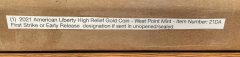 Priced at $2,715.00, order the high relief 2021-W $100 Proof American Liberty Gold Coin from the U.S. Mint beginning at Noon ET via their online store page dedicated to gold coins.