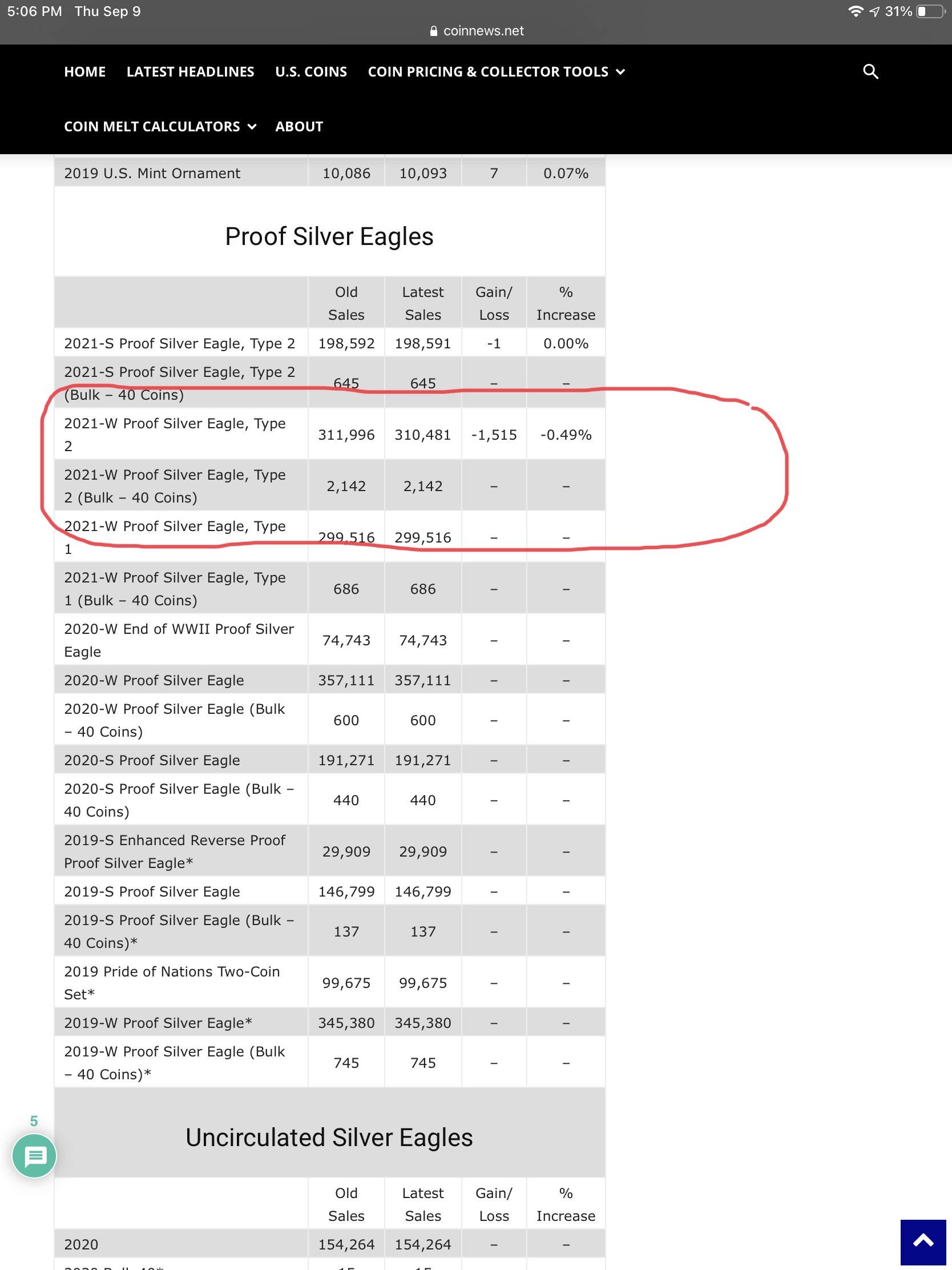 For reference, very early sales of some older issues reached: 100,499 (2020); 82,784 (2019); 89,482 (2018); 111,224 (2017); 134,925 (2016); 127,872 (2015); 106,349 (2014); 104,570 (2013); and 123,801 (2012). The 2011-W Uncirculated Silver Eagle eclipsed those numbers at 184,967 in its first four days owing to pent-up demand following a two-year program hiatus.