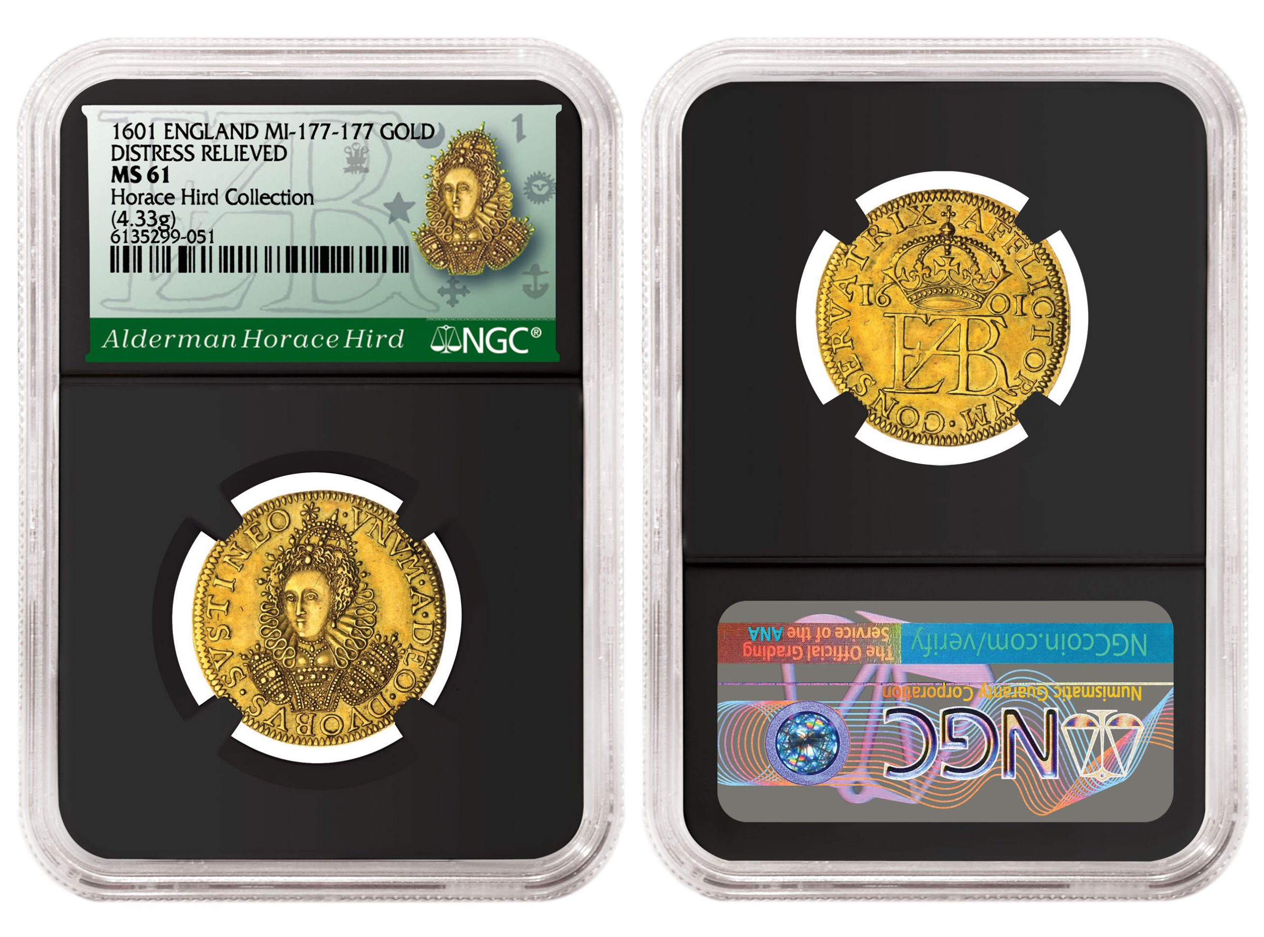To celebrate the significance of these coins re-entering the spotlight, NGC encapsulated them with a custom-designed label that includes an image of Elizabeth I from the 1601 piece. Each coin is pedigreed to the Horace Hird Collection and encapsulated with a distinguished black core that further enhances their artistry.