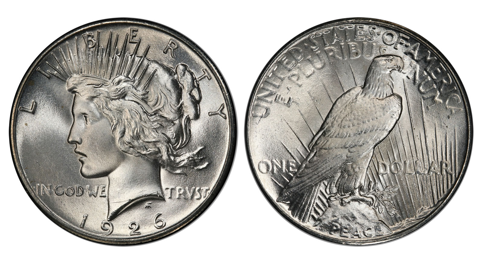 A 1926 $1 MS67 PCGS from The James E. Blake Collection reached $120,000, a record for the most ever paid for a 1926 Peace Dollar. Production of this coin dipped to just 1.9 million pieces in 1926, and few survivors can match the quality and eye appeal of this Superb Gem example.