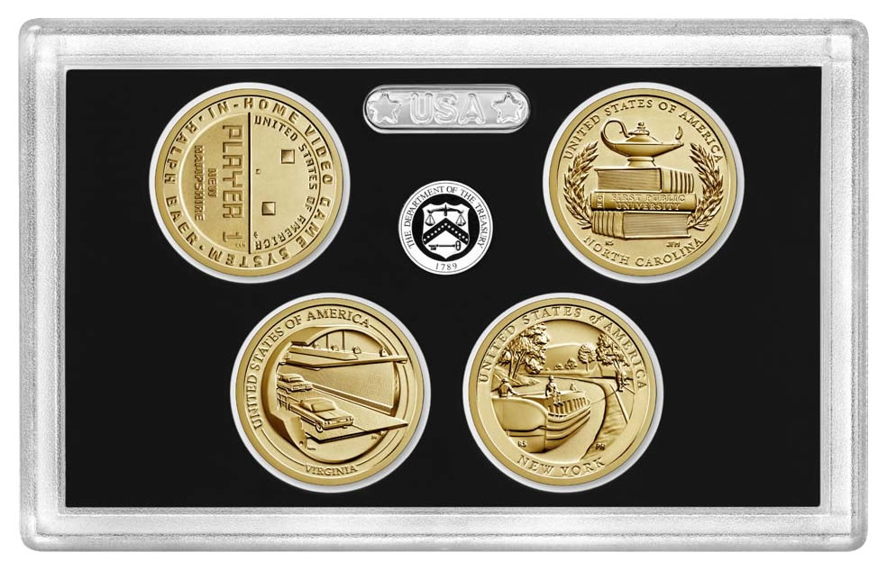 Four uniquely finished dollars celebrating ingenuity and invention from the states of New Hampshire, Virginia, New York and North Carolina appear together in a United States Mint product which launches today at noon EDT.