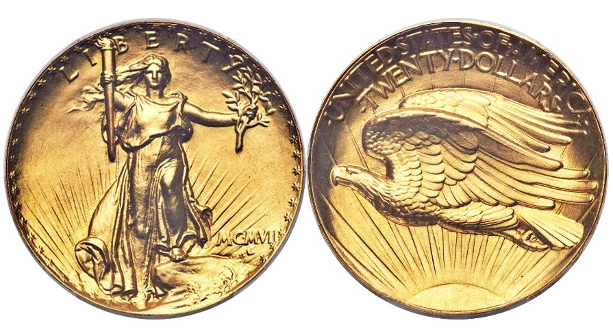 Less than 20 of the Ultra High Relief, or Extremely High Relief, were minted and it is estimated just 13-15 exist today. Aside from the Ultra High Relief, a High Relief version was also issued in 1907, which is very popular among collectors and routinely sells for $20,000-40,000 in low- to mid-uncirculated grades. A regular low relief issue was then used on all Double Eagles ($20 Gold Pieces) from 1907 until 1933.