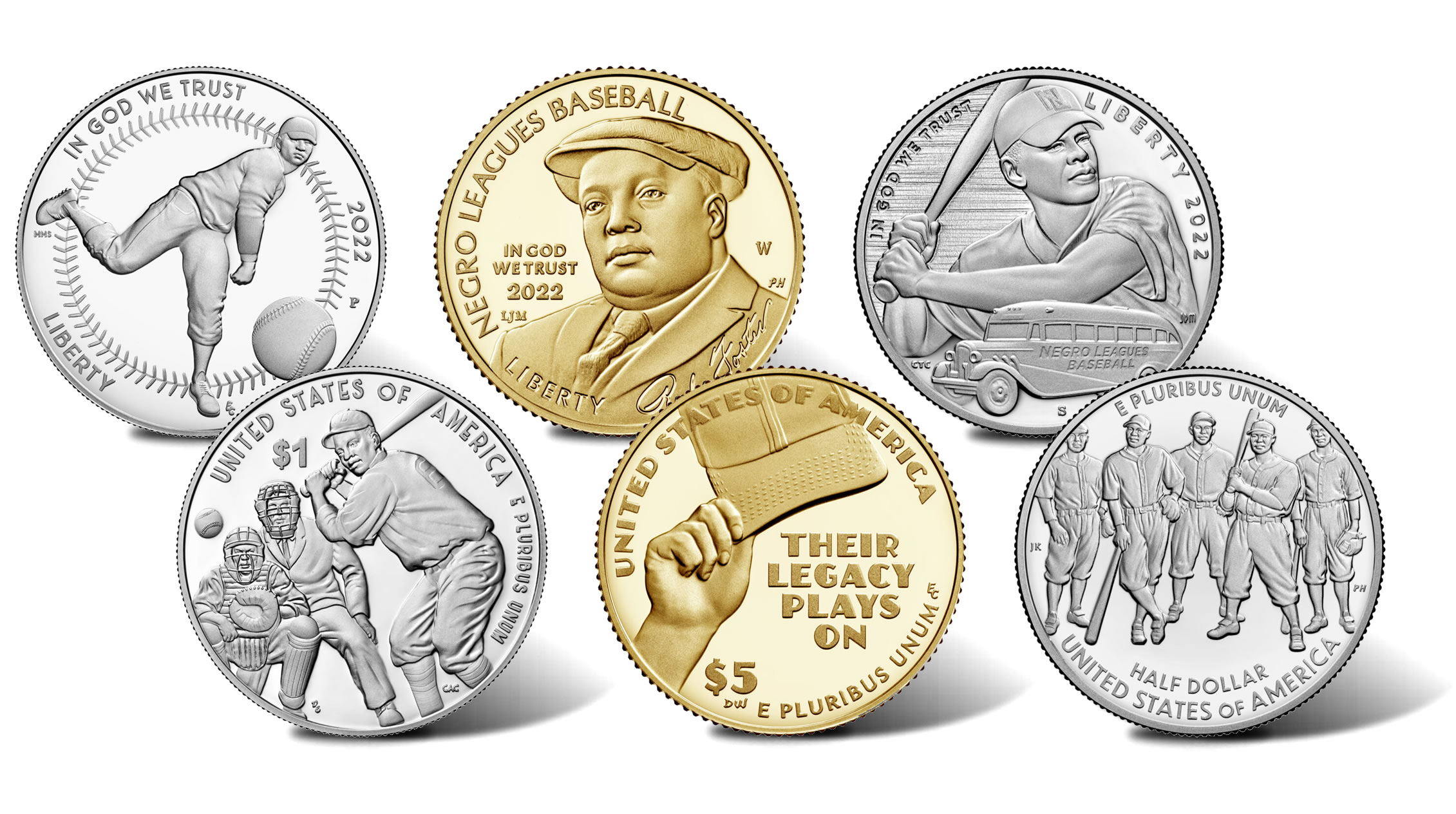 There are nine options encompassing individual or combinations of $5 gold coins, silver dollars, a silver medal, and clad half-dollars. All of them celebrate the 100th anniversary of the establishment of the Negro National League, the first successful, organized professional African-American baseball league in the United States.