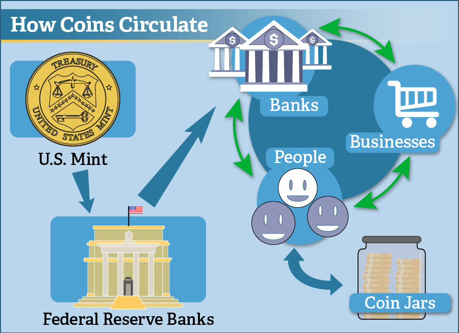U.S. Mint plants in Philadelphia and Denver manufacture all of America’s coins for commerce. In 2021, the Philadelphia Mint made 7,053,310,000 coins while the Denver Mint made 7,440,160,000 coins.