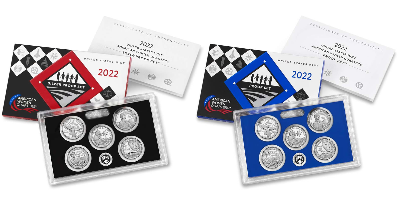 Regarding annual quarter sets, the U.S. Mint has not scheduled release dates for their clad 2022 American Women Quarters Proof Set or their 2022 American Women Quarters Silver Proof Set, but they have published images and prices for them.