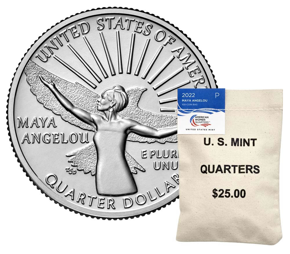 Rolls and bags of Maya Angelou quarters may be ordered from the U.S. Mint’s online catalog of American Women Quarters.