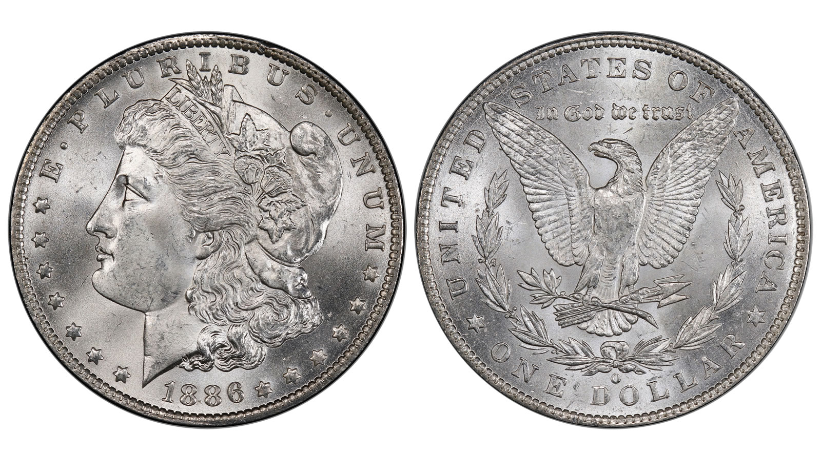 The 1886-O Morgan Dollar, MS65 PCGS, one of just three graded by PCGS in MS65 (one in 65+), comes from an issue that was not well made. An estimated 2-4 million coins were released into circulation; the majority of the mintage was held in government storage and most of those coins were probably melted in 1918, under the provisions of the Pittman Act. The 1886-O was not well-represented in the Treasury releases of the 1960s, alerting collectors and dealers to its elusive nature in high grade for the first time. Third-party grading has established the 1886-O as a leading condition rarity in the series over the last 35 years.