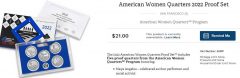The 2022 American Women Quarters Proof Set may be ordered directly from the U.S. Mint via this link to its American Women quarter products. The set is priced at $21 with no mintage, household, or order limits in place.