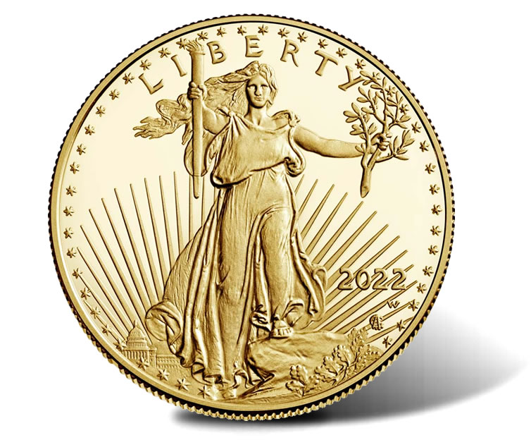 Each proof Gold Eagle carries new designs introduced last year as part of the U.S. Mint’s 35th anniversary refresh of the series. For those following the program, 2021 saw two design versions of the coins, the original or classic (Type 1) and its successor (Type 2). Type 2’s offer a refreshed obverse (heads side) and an all-new reverse (tails side). 2022 American Gold Eagles continue the type 2 imagery.