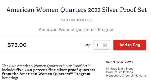 The United States Mint kicked off sales last week for one collector product, the 5-coin set of silver 2022 quarters honoring Maya Angelou, Dr. Sally Ride, Wilma Mankiller, Nina Otero-Warren, and Anna May Wong.