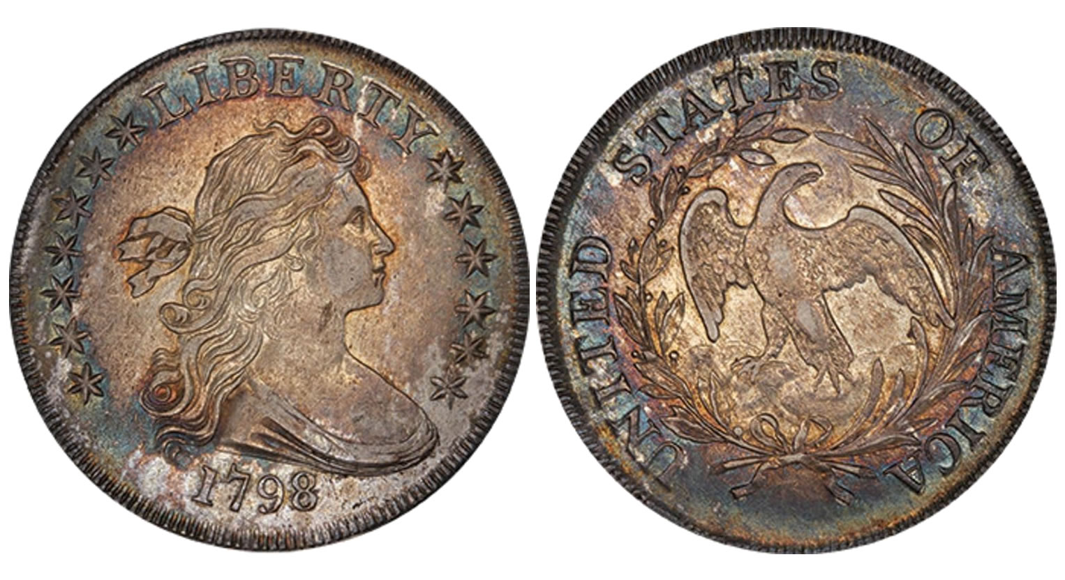 - Lot 30. $1 1798 Small Eagle, 13 Stars. PCGS AU58 CAC, ex Cardinal-Legend, realized $205,625.00