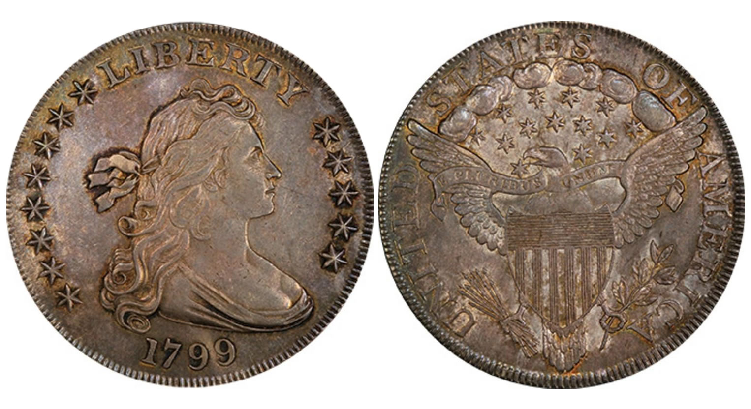 - Lot 36. $1 1799 8X5 Stars. PCGS AU58 CAC, ex Hesselgesser/Cardinal, realized $41,125.00