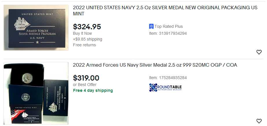 - Navy 2.5 Ounce Silver Medal – March 11, 2022