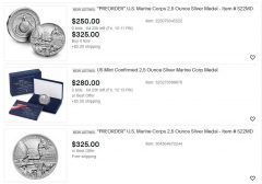 Today at noon ET, the United States Mint will release the U.S. Marine Corps 2.5 Ounce Silver Medal for $160. Only 10,000 of the 2-inch diameter, .999 fine silver medals are available.