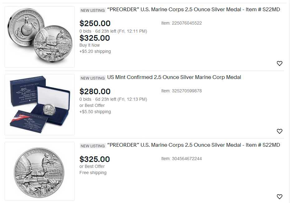 The Marine Corps 2.5 Ounce Silver Medal may be purchased directly from the U.S. Mint via their online store for silver medals.