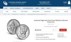 Anyone interested in buying the 2022-W $25 Reverse Proof American Palladium Eagle may place an order from the U.S. Mint’s online page for palladium products.