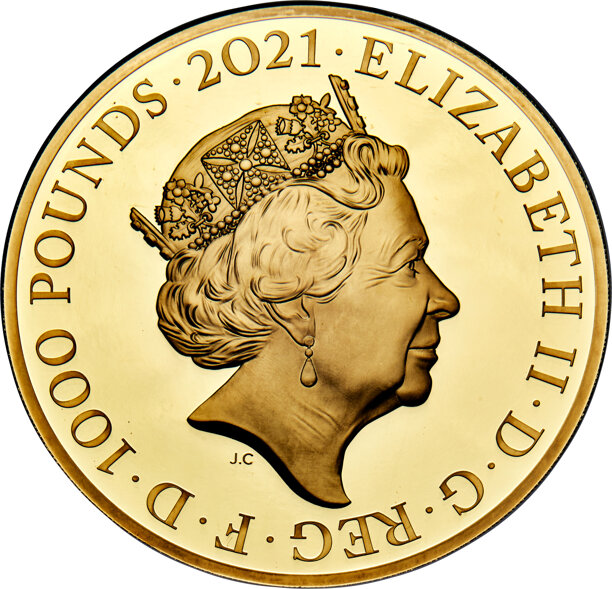 A technically flawless kilo issue of an Elizabeth II gold Proof "Gothic Crown Quartered Arms" 1000 Pounds (Kilo) 2021 PR70 Ultra Cameo NGC (estimate: $60,000-80,000) is a beautiful rarity from a limited-edition presentation mintage of just 20 examples from the Great Engravers Series, highlighting the masterworks of William Wyon exclusively and one of only a handful in the kilo size to come to market over the last year.