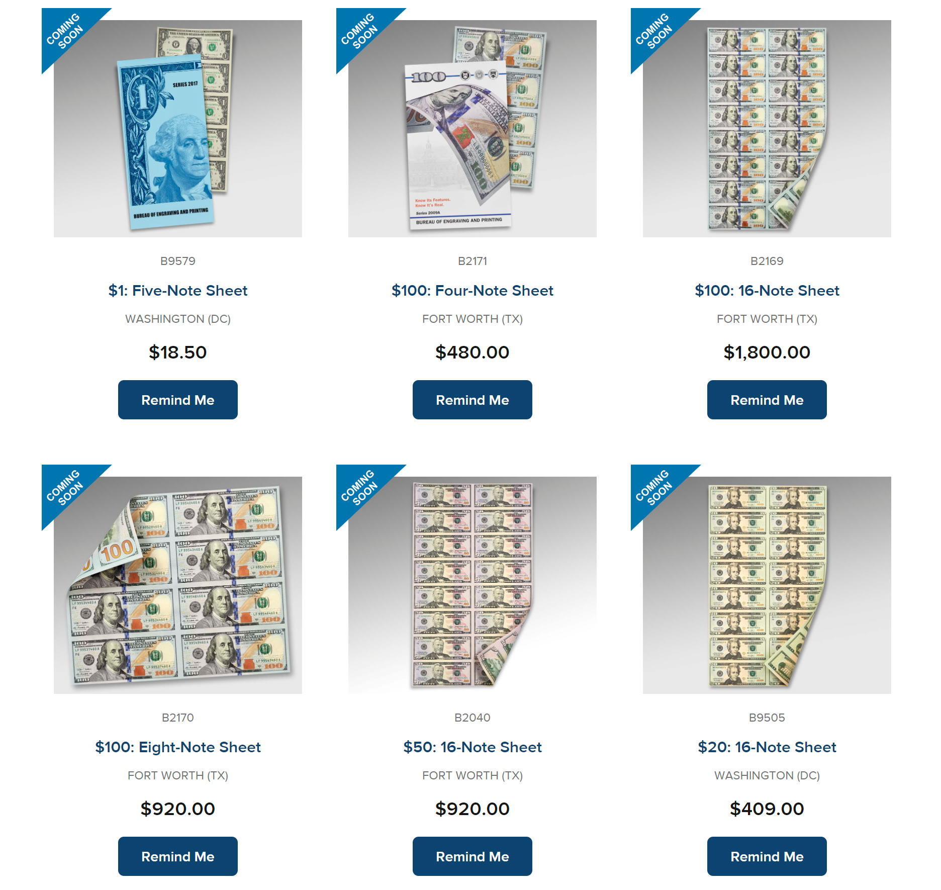 "Please note, the BEP is temporarily unable to replenish its numismatic product inventory sold through the United States Mint. We thank you for your continued support during this time and look forward to your future opportunity to purchase this product or add to your collection."