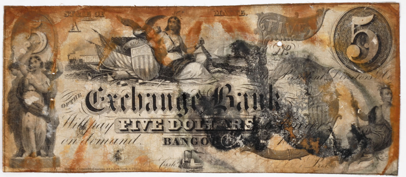- Exchange Bank, Bangor, Maine, $5, Haxby G8., $5,760.