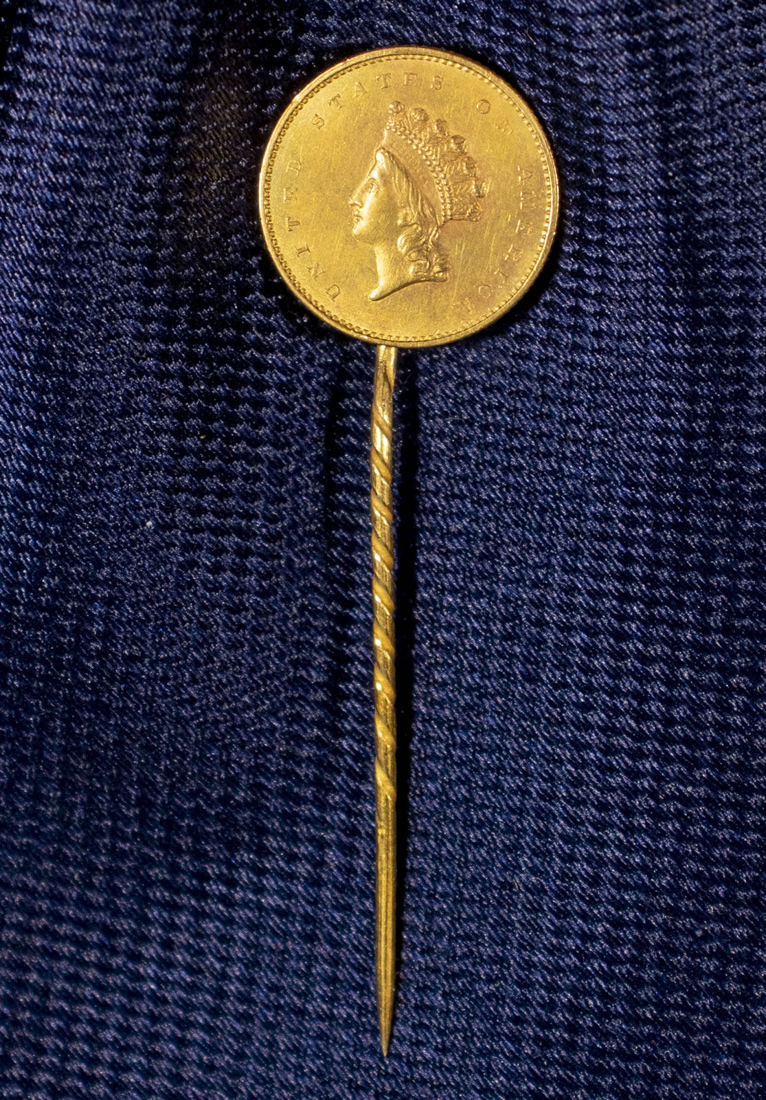 A gold stickpin crafted with a U.S. Type II $1 gold coin of 1854-1856 sold for $5,040, and a sampling of nine unconserved pocket change coins gathered from the seafloor around the shipwreck site sold for $1,920.