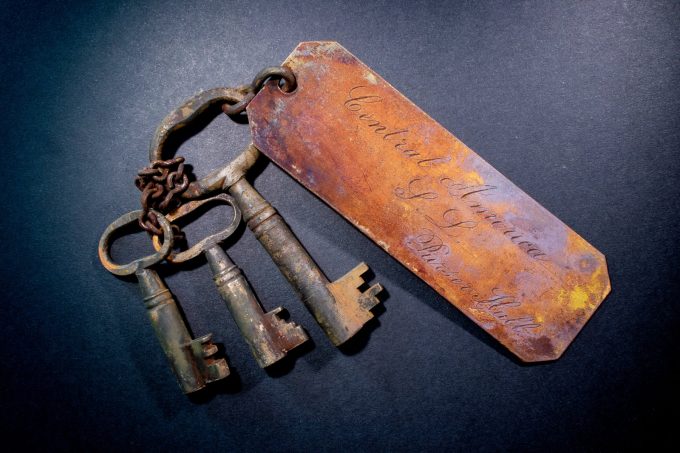 Another never-before-offered numismatic item recovered from the legendary ship were Purser Edward W. Hull’s keys to the ship’s treasure cargo storage room.