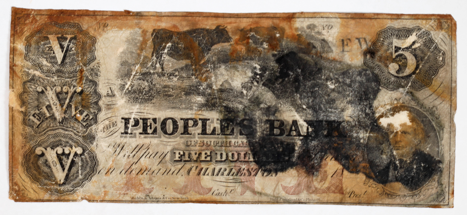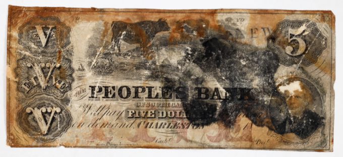 - Peoples Bank $5, Charleston, South Carolina, Haxby G2a., $3,720.