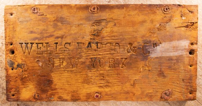 A unique wooden lid to a Wells Fargo & Co. treasure box was one of the many California Gold Rush sunken treasure highlights recovered from the fabled "Ship of Gold," the S.S. Central America that sank in 1857, in the Holabird Western Americana Collections (www.HoladbirdAmericana.com) auction held December 3, 2022 in Reno, Nevada and online. The lid with the engraved name "Wells Fargo & Co./New York" boldly visible sold for $99,600.