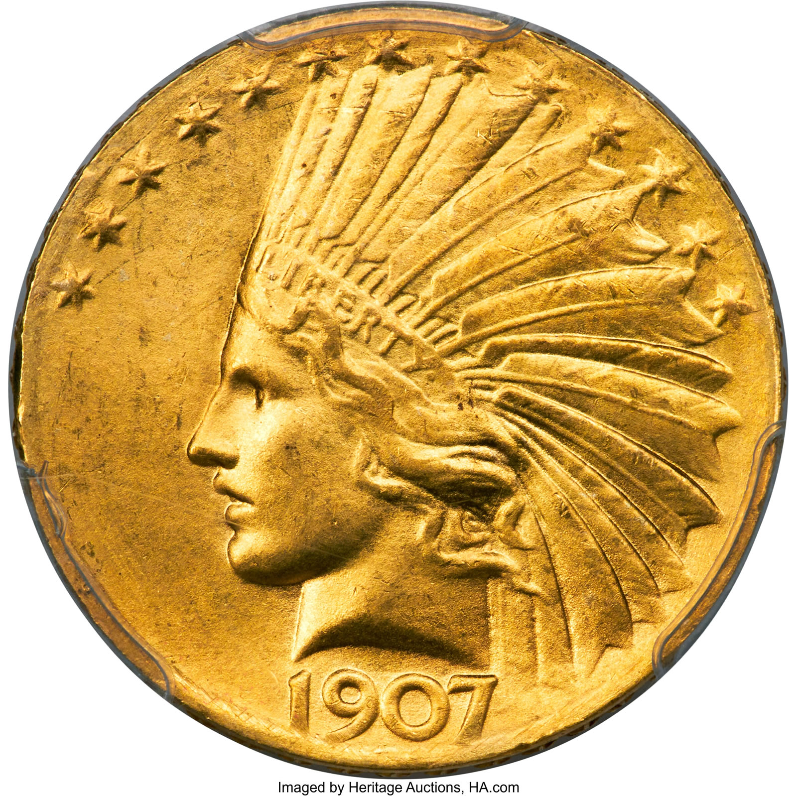 - A 1907 $20 High Relief, Flat Rim, MS65 PCGS: $52,800