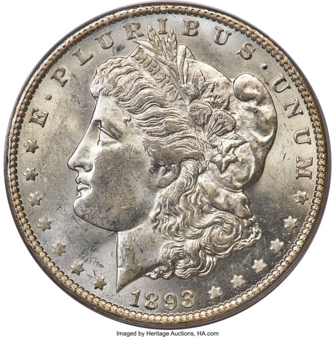 The most sought-after key to circulation strikes, from a mintage of 100,000, an 1893-S Silver Dollar, MS64 is an absolute rarity in Mint State grades: As of December 2022, PCGS had certified just 38 Mint State examples, 10 more than NGC’s 28.