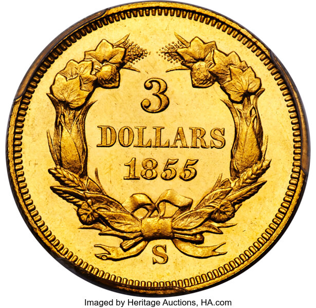 It’s one of the oldest rules of collecting: The scarcer something is, the greater the demand among collectors. It therefore is no surprise that an 1855-S Three Dollar Gold, PR64 Cameo is among the most coveted prizes at Heritage Auctions’ Long Beach Expo US Coins Signature® Auction Feb. 9-12.