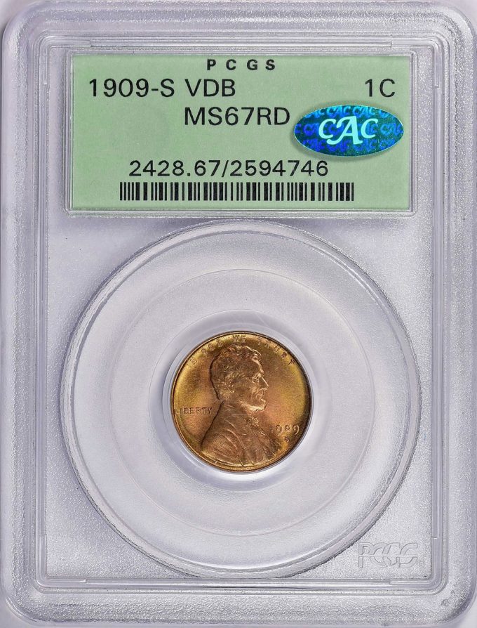 1909-S Lincoln Cent V.D.B. PCGS MS-67 RD CAC OGH |