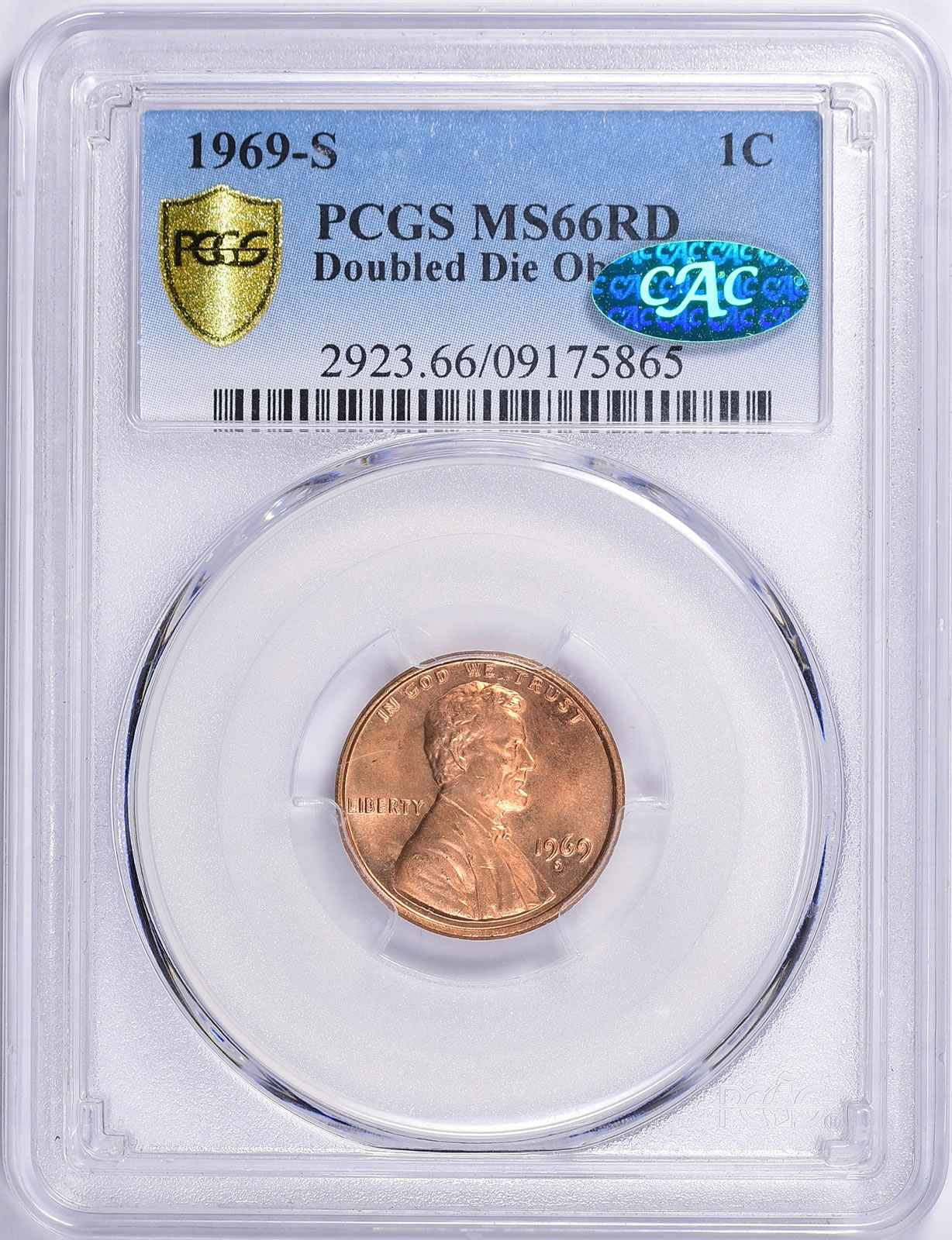 1969-S Lincoln Cent Doubled Die Obverse PCGS MS-66 RD CAC |