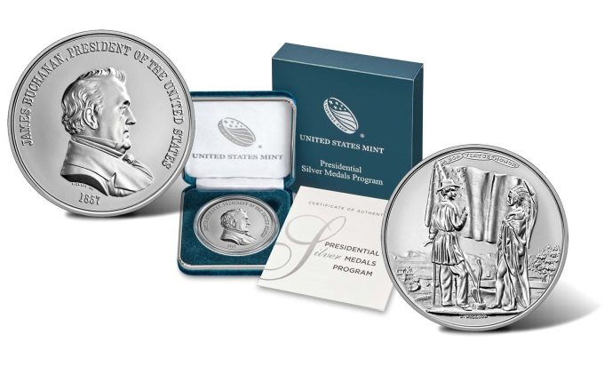 Honoring the 15th President of the United States, the U.S. Mint today released the 1-ounce, .999 fine James Buchanan Presidential Silver Medal. The price for the new collectible is $75, representing a $10 increase from medals in the series issued last year.